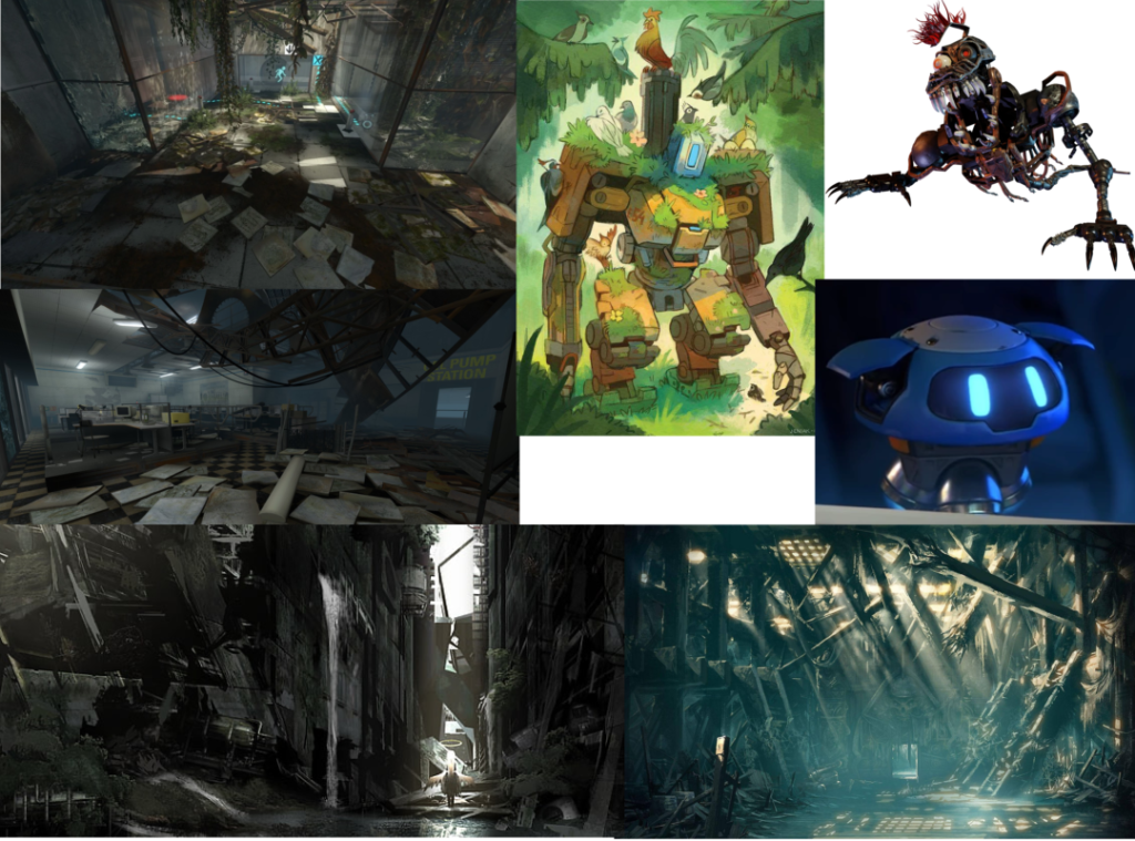 As you can see it is based on the portal’s decaying structure as it almost fully fits what I am going for. However I also included references for the robot and drone, wanting to implement damage but also maybe some growth on them to help them stick out from all the other damage robots I’m sure are out there.