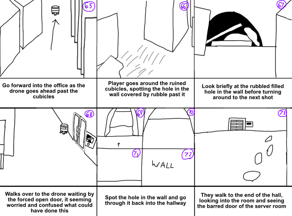 Now I have figure out the layout I can make my storyboard, I was making it while learning and improving the layout, but you can only see remnants of this in places it doesn’t really matter, like in the door opening scene.